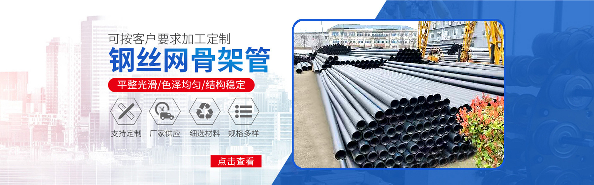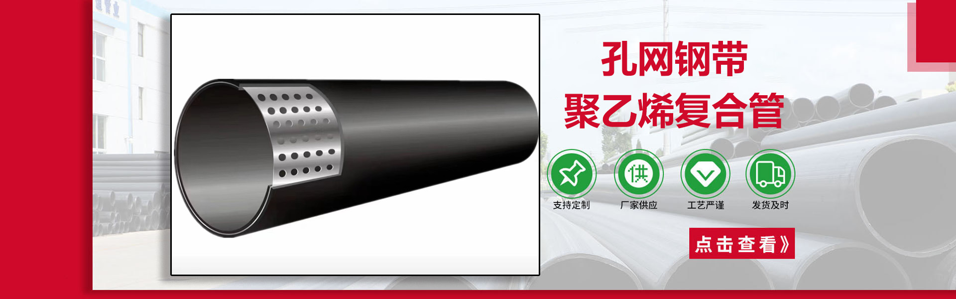 江蘇草莓视频ios新材料有限公司地(dì)處享(xiǎng)有“中國管材之都”美譽的江蘇泰(tài)州市薑(jiāng)堰區,交通(tōng)發達,物流繁榮。 我們有鋼絲網骨架聚(jù)乙烯複合管(guǎn)及管件(SRTP),以其特有的防(fáng)腐蝕、耐磨、耐高溫、抗嚴寒、耐壓、抗蠕變、穩定性好、安(ān)裝方便等特點,逐步取代各類金屬管道(dào)和塑料管道,應用於石油、化工、燃氣、供水、采礦、海水(shuǐ)輸送等領域。 我們憑借優異(yì)的產品質量和完善的工程服務體係,銷售網絡已輻射湖北、北京、上海、浙江、江西、福建、安徽(huī)、山東、廣東、廣(guǎng)西、新疆、甘肅、湖南、四川、貴州等十幾(jǐ)個省市(shì)和地區。我們秉承“誠信、進取、品質、永恒”的經營方(fāng)針和“滴水(shuǐ)不漏”的管理(lǐ)模式,堅持(chí)“團(tuán)結務實,求實(shí)創新,開拓(tuò)進取(qǔ),…